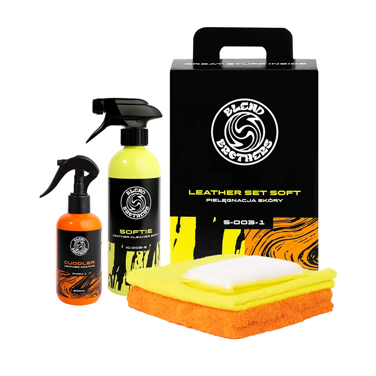 SOFT Nahahoolduskomplekt on detailingukosmeetika komplekt, mis sisaldab tooteid auto naha puhastamiseks ja kaitsmiseks. Komplekt sisaldab nahapuhastusvahendit ja nahakaitset ning kõiki vajalikke tarvikuid. Hoolitse oma auto eest ja hoia see puhtana BLEND BROTHERS toodetega!