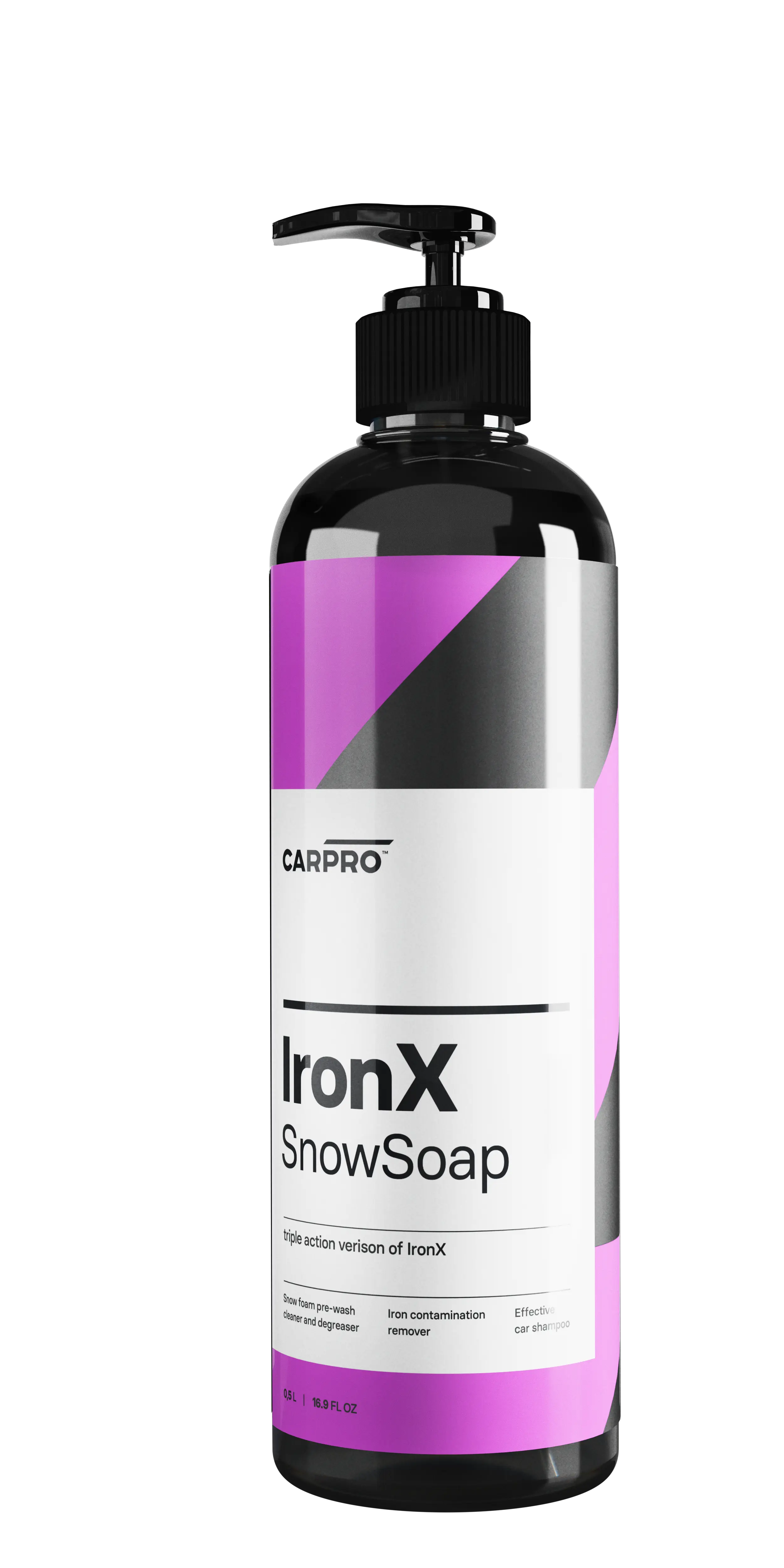 Iron-X Snow Soap'i loomisel kujutasime ette, kui palju aega saab kokku hoida, kui ühendada Iron-X'i rauapuru eemaldamise võime keskkonnasõbraliku pindaktiivse aine puhastus- ja määrimisvõimega. See idee pani aluse ühele kõige mitmekülgsemale ja tõhusamale hooldustootele turul. Muutes lahjendussuhet, saab Iron-X Snow Soap'i kasutada rauda eemaldava lumeseebina koos vahupaneku või pesukinnasega! Seda saab kasutada ka savi ja polümeeride dekoonimise toodete määrdeainena või isegi hooldusrataste puhastusvahendina. Tõeline mitmeotstarbeline puhastusvahend.