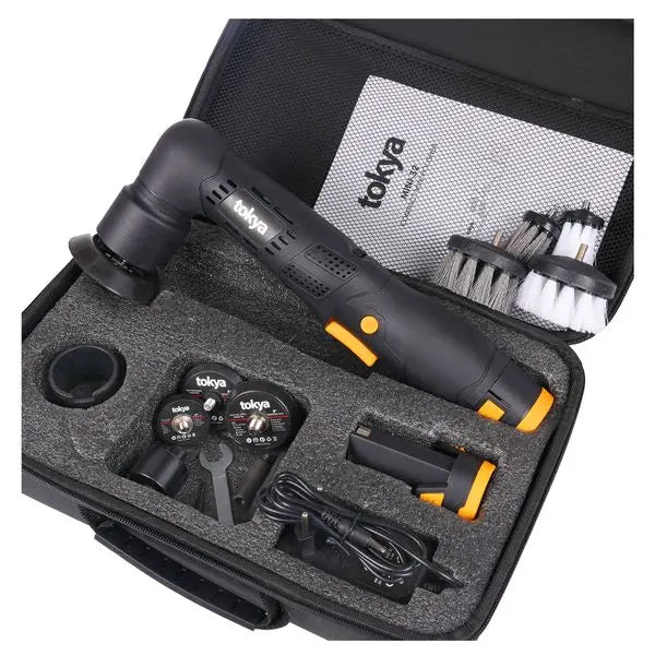 Äärmiselt mitmekülgne akutoitel töötav poleerimismasin 1,5", 2" ja 3" padjaile. Sellel masinal on ühes seadmes nii 3 mm kui ka 12 mm kahetoimeline ja pöörlev funktsioon, mis tagab erakordse paindlikkuse. Komplektis on lai valik tarvikuid erinevate poleerimisülesannete täitmiseks.