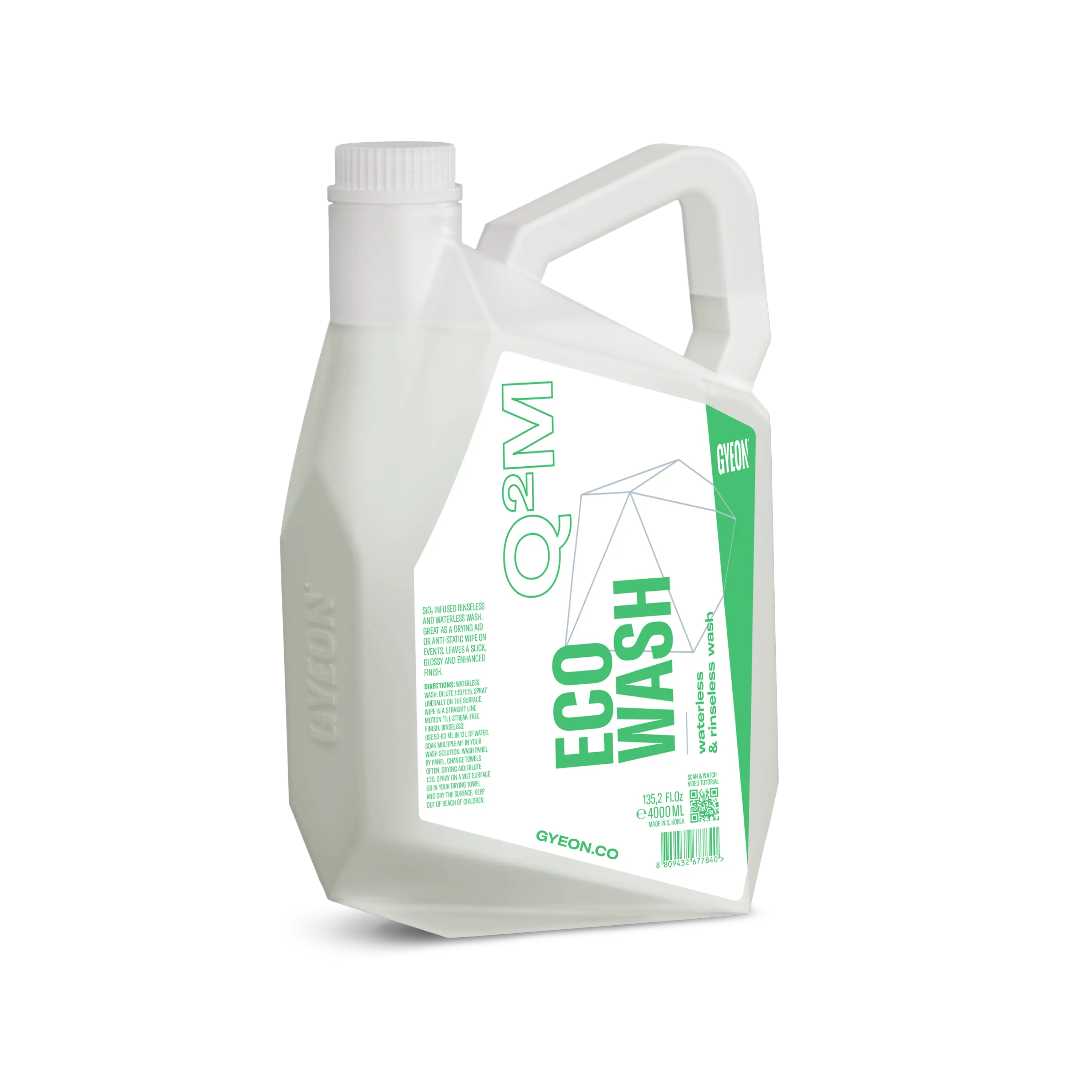 Q²M ECOWash võimaldab teil kiiresti ja ohutult puhastada oma sõidukit, ilma et oleks vaja kasutada jooksvat vett ja vajadust vee äravoolule või ilma, et pesuvahendid tilguksid pinnasesse/sõiduteele. Seda saab kasutada ühel kolmest viisist: - veevaba pesuna; - loputuseta pesuna; - kuivatusabina. Kontsentreeritud koostis võimaldab teil proovida erinevaid lahjendusi ja leida oma lemmiksegu sõltuvalt kasutusalast, kasutamisest, kliimast ja isiklikest eelistustest.
