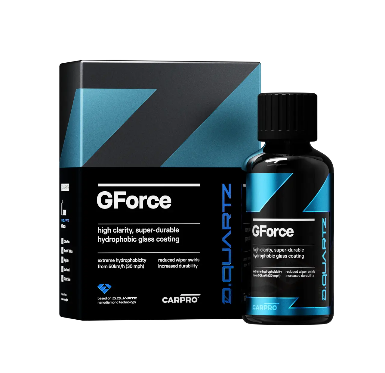 DQUARTZi tulekuga muutusid auto pinnakatted igaveseks ja nüüd on CARPRO toonud oma tehnoloogilise revolutsiooni ka teie tuuleklaasile ja klaaspindadele! Täiesti uus DQUARTZ GForce kattekiht klaasile on revolutsiooniline uus nanoteemanttehnoloogia, mis on loodud algusest peale otse klaasile kinnitumiseks, mis tagab suurepärase kaitse ja kristallselge nägemise kuni 2 aastaks!