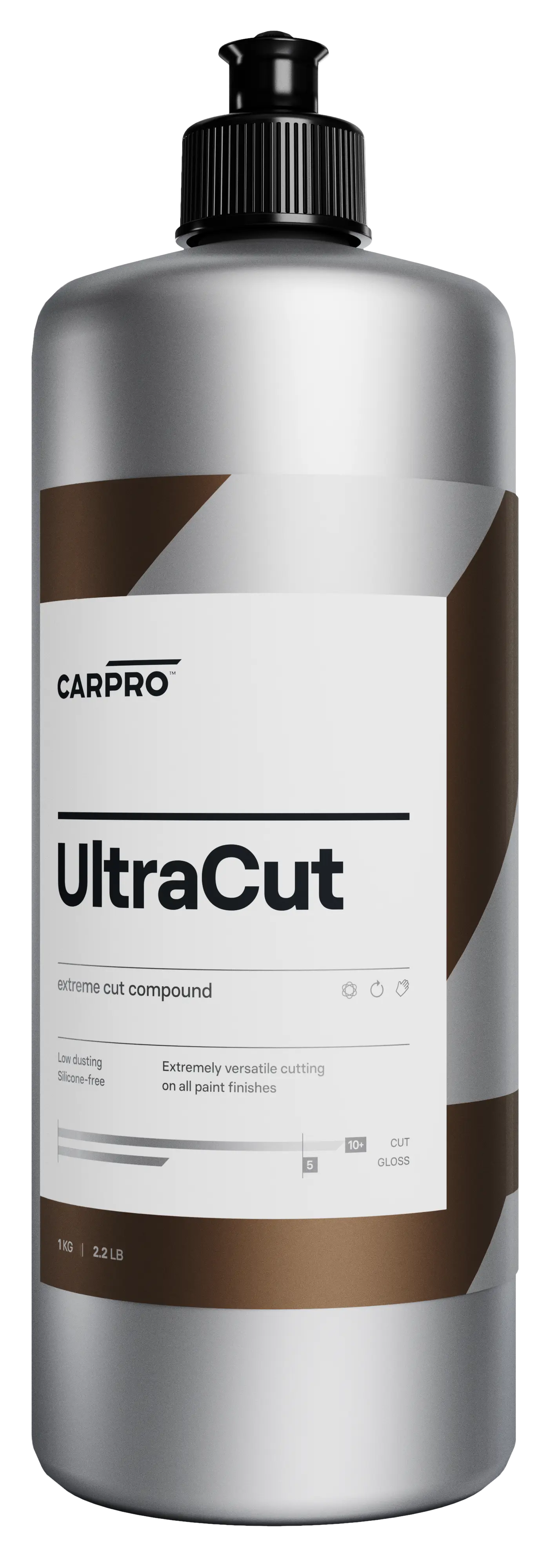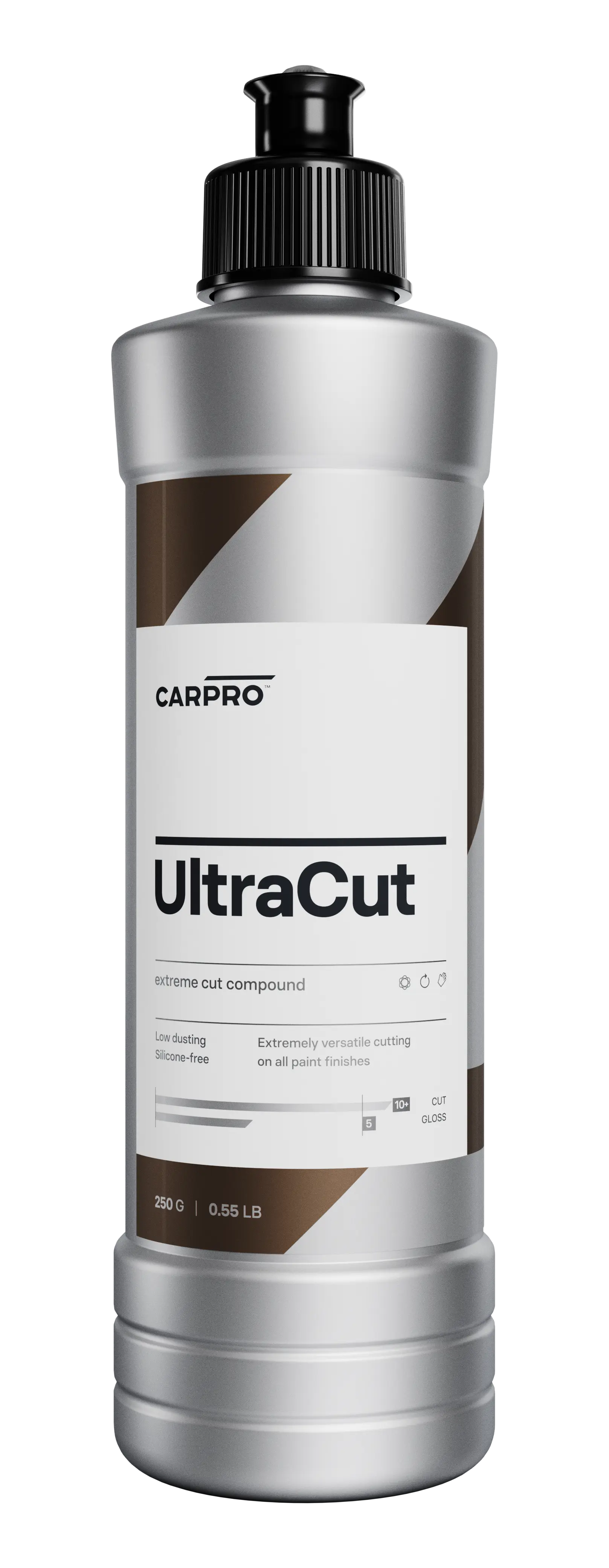 Ultracut sisaldab kokteili täielikult vähendavatest abrasiividest, mis korrigeerivad raskeid defekte, tekitades samal ajal minimaalse hägususe. Ühendage see CARPRO lõikepadjadega (Wool, Flash, Cool) või mikrokiududega, et eemaldada defektid äärmiselt tõhusalt ja efektiivselt. Langetage CARPRO oranži poleerimispadiga ja saate viimistleda hologrammivabalt.