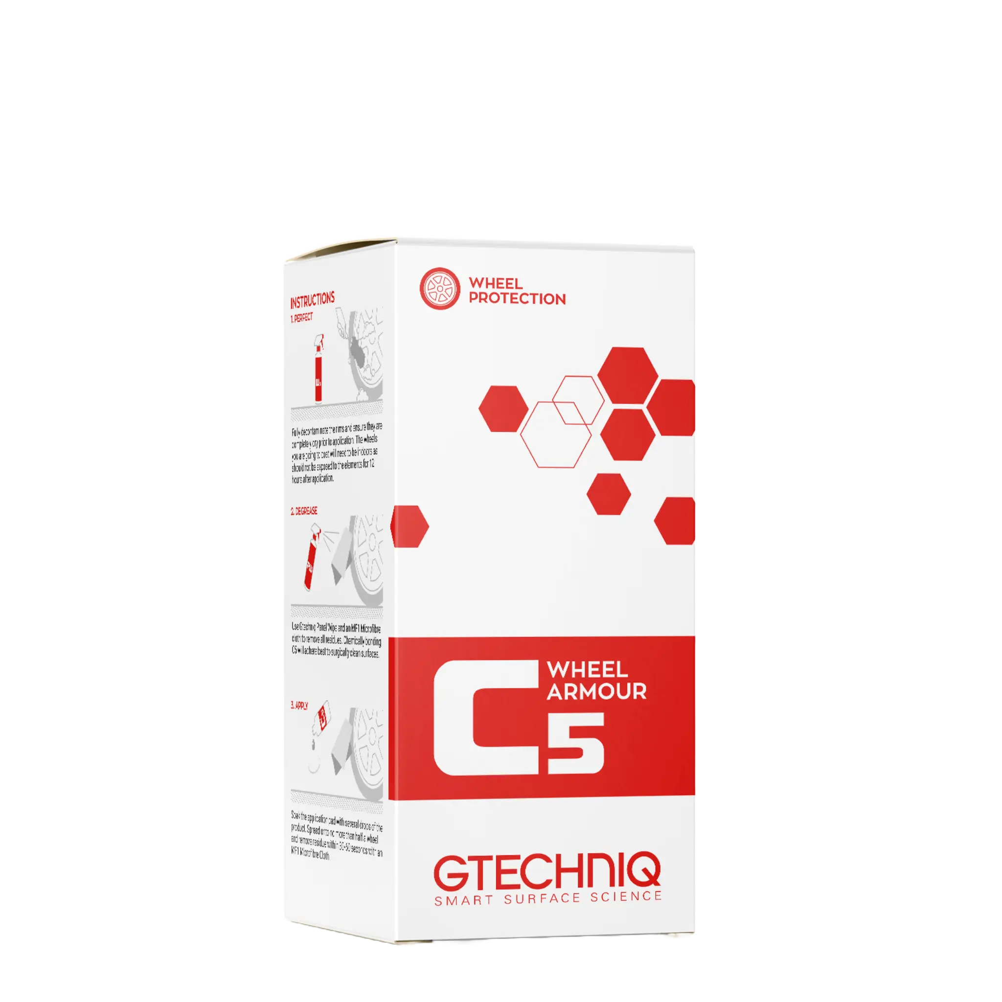 C5 Wheel Armor pakub parimat kaitset ratastele, tõrjudes piduritolmu ja saasteaineid, muutes need lihtsamini hooldatavaks. C5 ainulaadne, erakordselt peen pindade reoloogia ja keemilise sidumise mehhanism tagab suurepärase jõudluse. Pinna omadused annavad kattele suurepärase plekkide ja saasteaine vastupidavuse, samas kui keemiline side ratta pinna ja C5 vahel teeb katte vastupidavaks. C5 säilitab oma terviklikkuse temperatuurideni kuni 600°C, mistõttu on see sobilik kõigile teie sõiduki velgede ja piduriklambrite osadele.